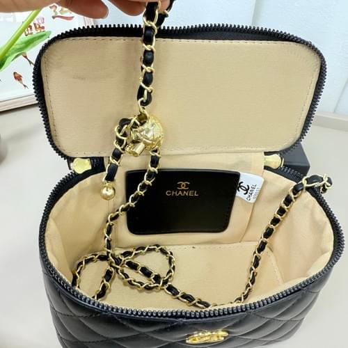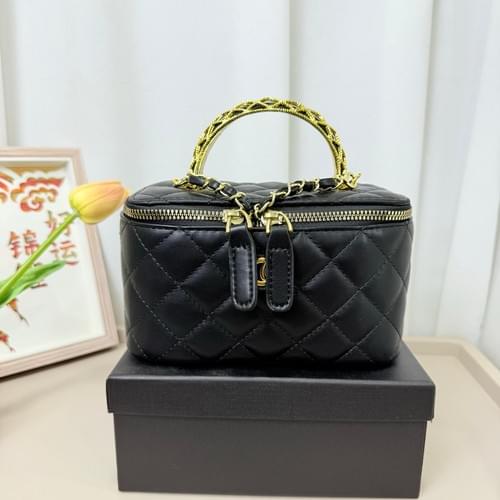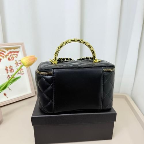 Black Quilted Makeup Bag Luxe Chain Handle Cosmetic Case