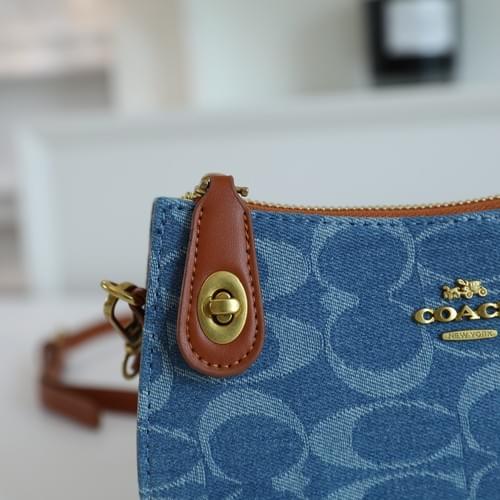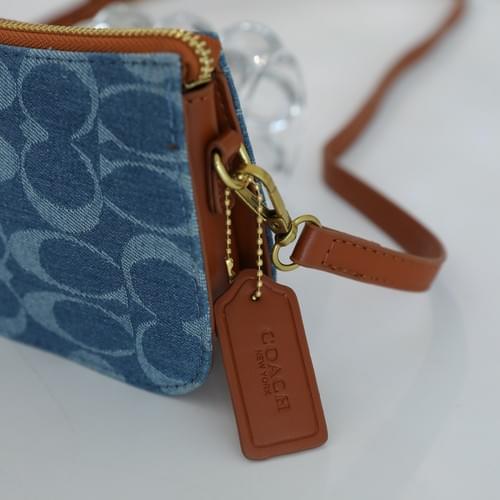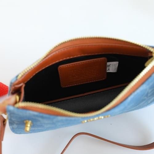 Coach Denim Signature Crossbody Bag - Blue with Gold Hardware & Adjustable Strap