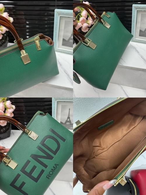 Bold Branding – Vibrant green tote with striking black "FENDI ROMA" typography for instant recognition.