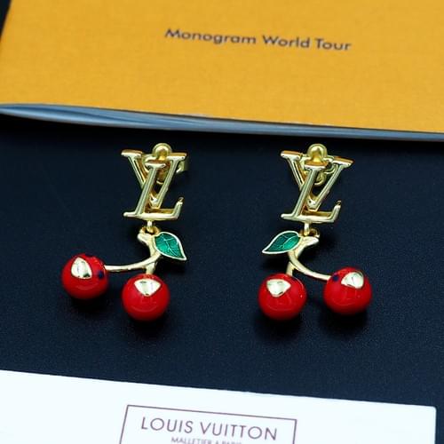 LV Cherry Motif Drop Earrings with Monogram Accent