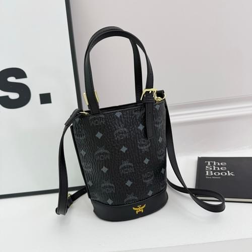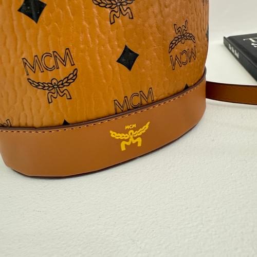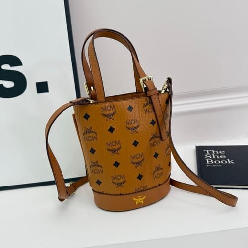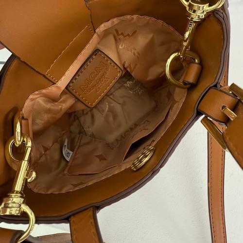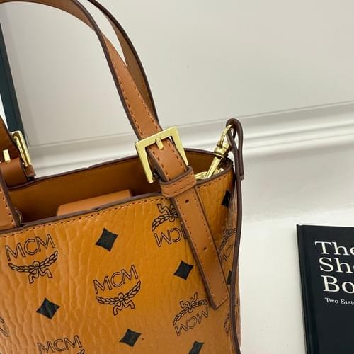 MCM Monogram Leather Bucket Bag – Cognac Brown Crossbody Tote