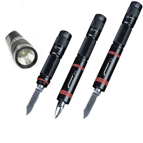 Mini Flashlight 3 Modes Small Flashlights LED Powerful High Lumens Tactical Pen Light with Knife