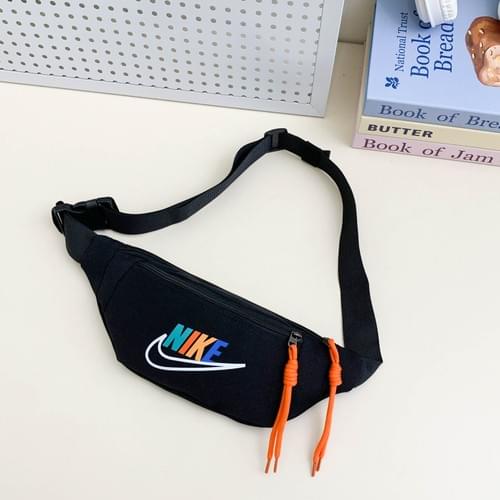 Urban Utility Design – Combines Nike’s iconic sporty aesthetic with functional waist pack styling, featuring a bold gray base and vibrant orange rope details.