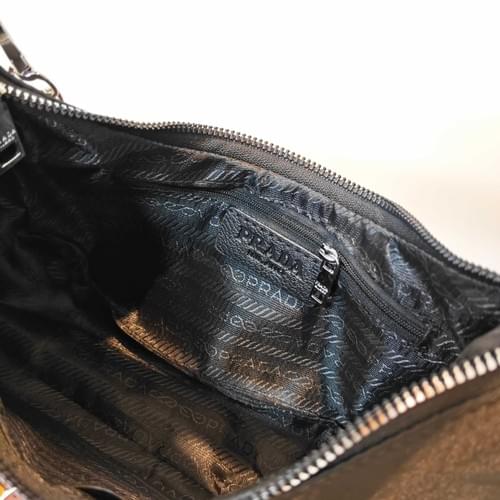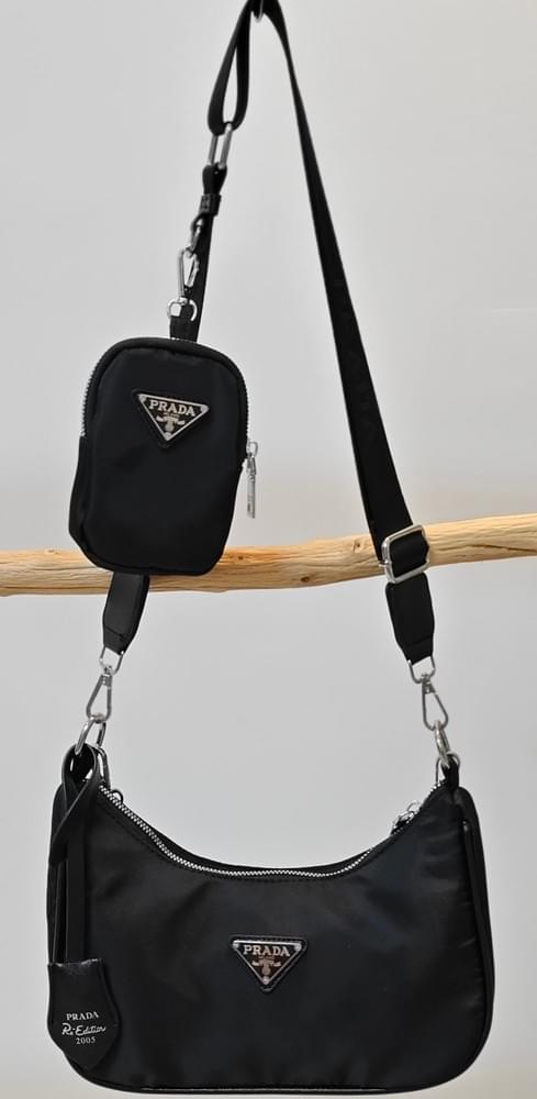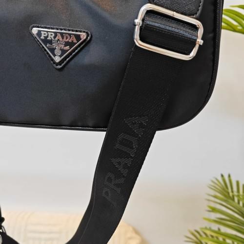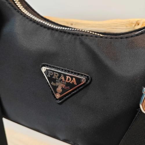 Iconic Prada triangle logo for a bold, luxurious statement.