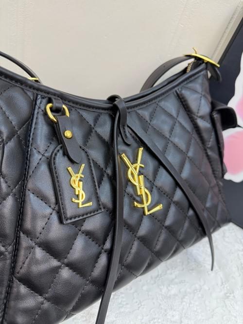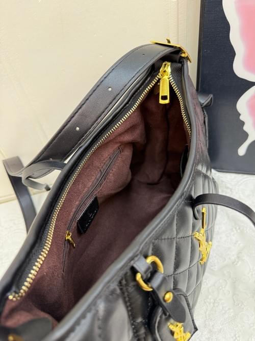 YSL Brown Quilted Handbag with Gold Accents & Bow Detail Luxurious Shoulder Bag